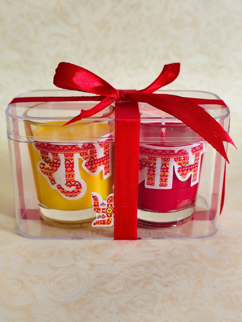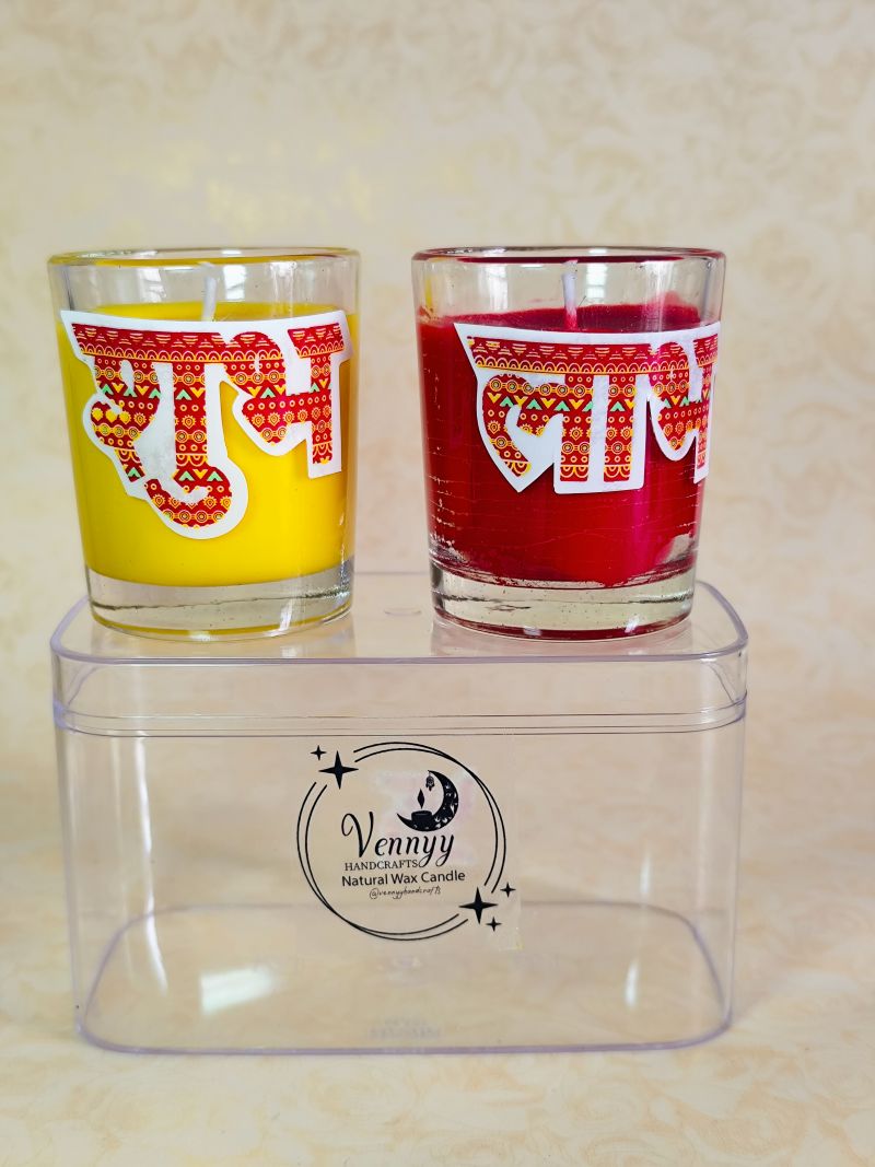 ✨ Set of Shubh Labh Short Glass Candles in Acrylic Box